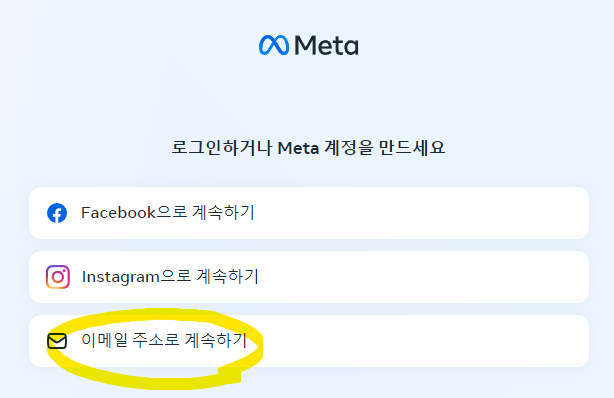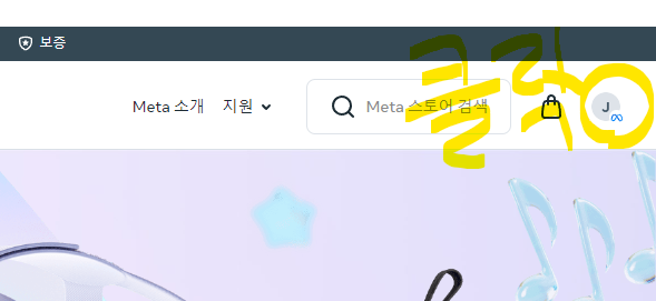 아래 그림과 같이, 메타 홈페이지 상단 우측 아이콘을 누르세요.