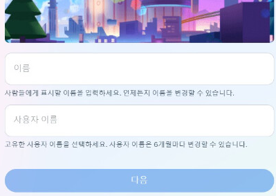 이름/사용자 이름을 채워넣고 다음으로 넘어갑니다.