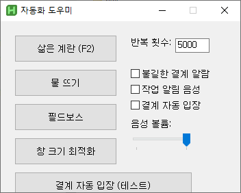 처음에는 요리레벨 올리기 위해, 삶은 계란만 자동으로 반복 생산하기 위해 만들었다.